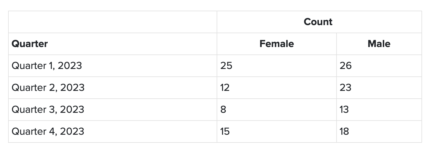 Table 3: Quarterly admissions to Jersey General Hospital by gender